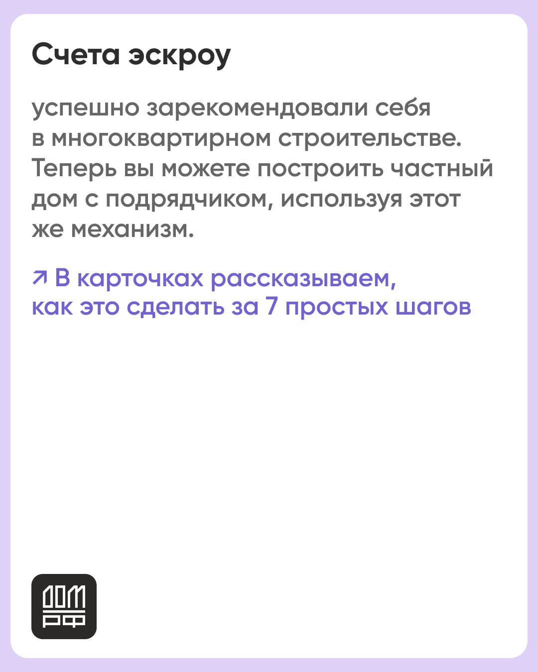 По прогнозу ДОМ.РФ, к 2030 году порядка 50% частных домов в России будут строиться профессиональными участниками рынка с помощью счетов эскроу.
