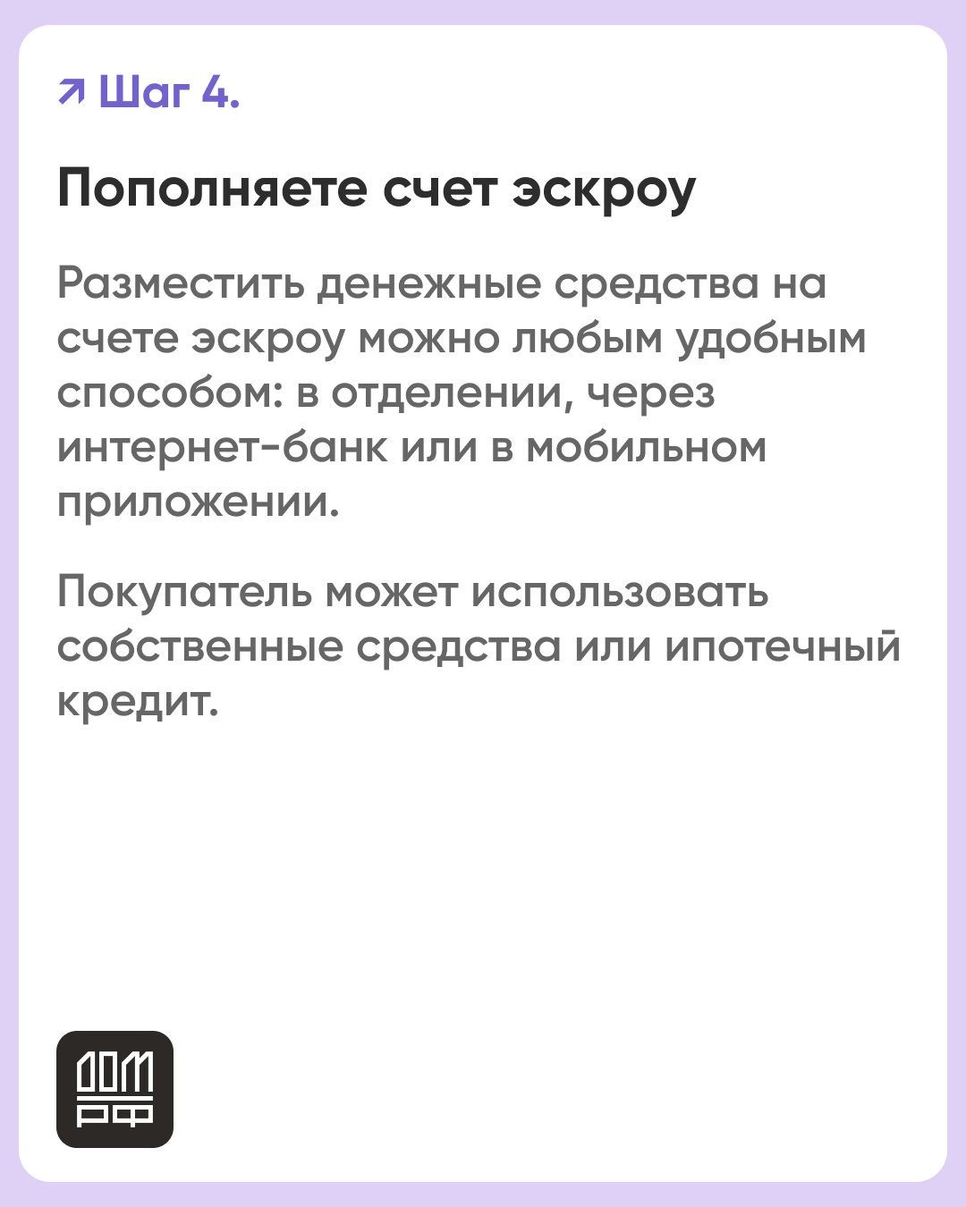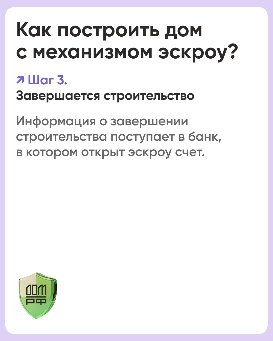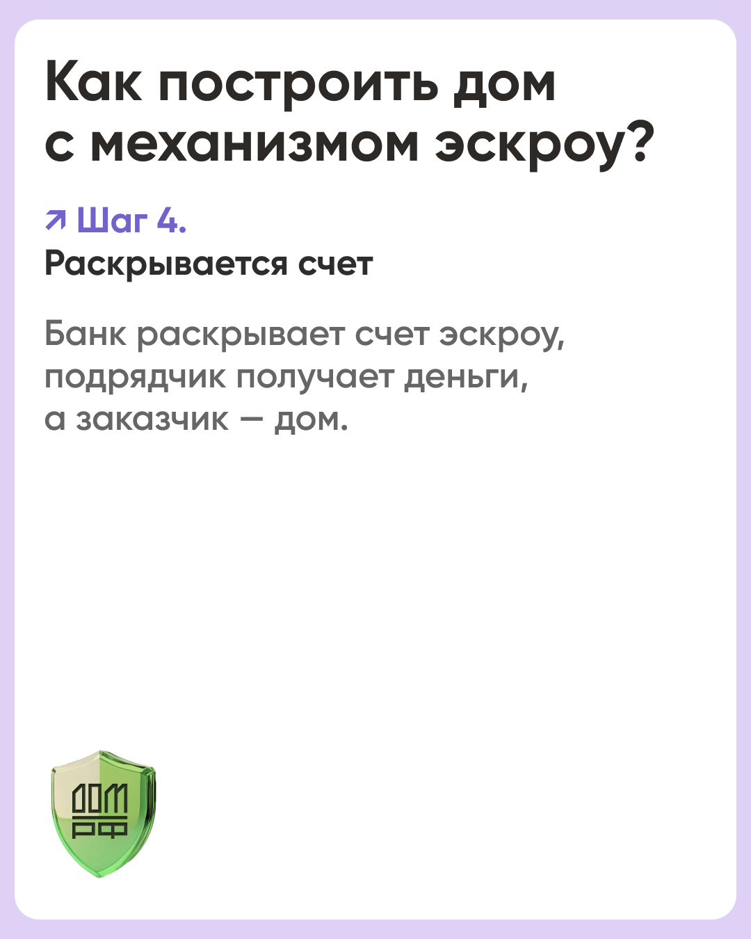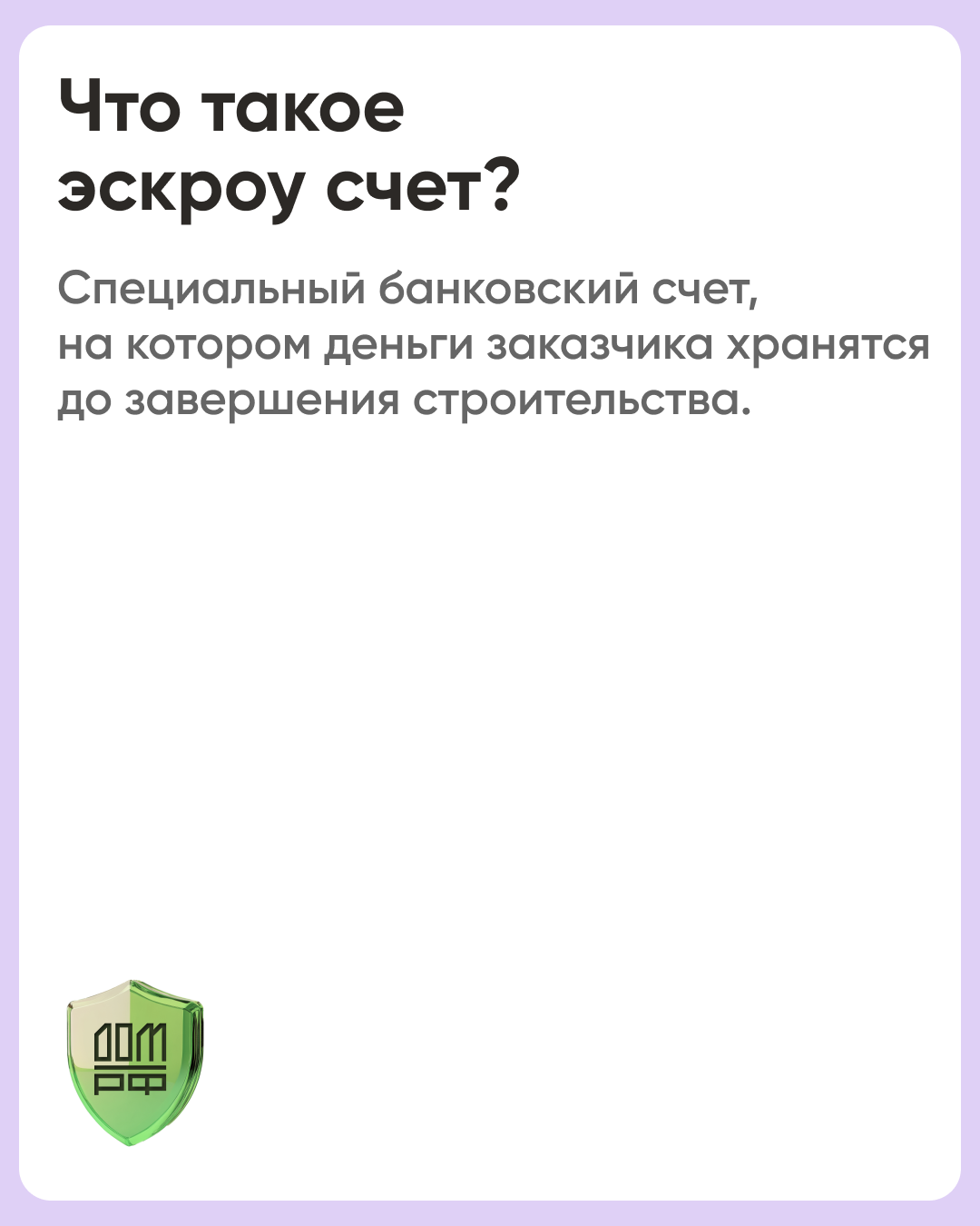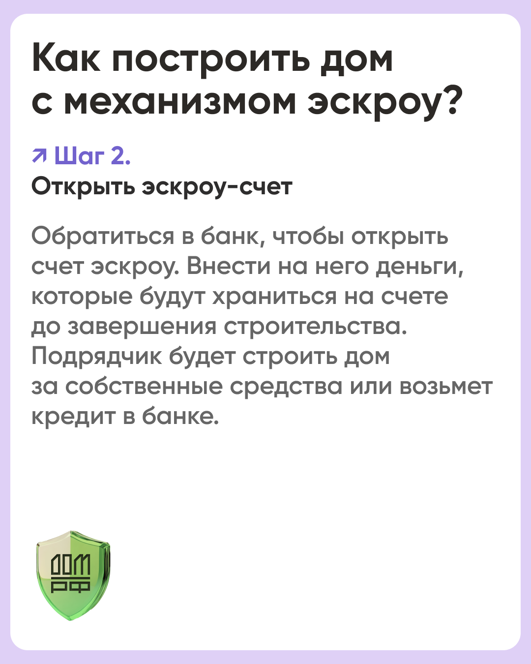 Эскроу-счет – это специальный банковский счет для безопасного проведения расчетов между покупателем и продавцом (заказчиков и подрядчиком). Получить деньги с такого счета подрядчик сможет только после завершения стройки и регистрации права собственности на жилой дом. Строительство объекта он ведет на собственные или заемные средства.