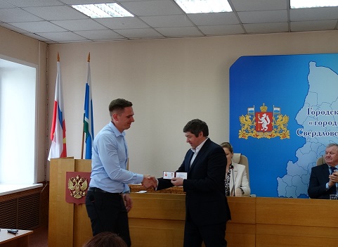 После депутатам были вручены удостоверения и нагрудные знаки депутата Думы.